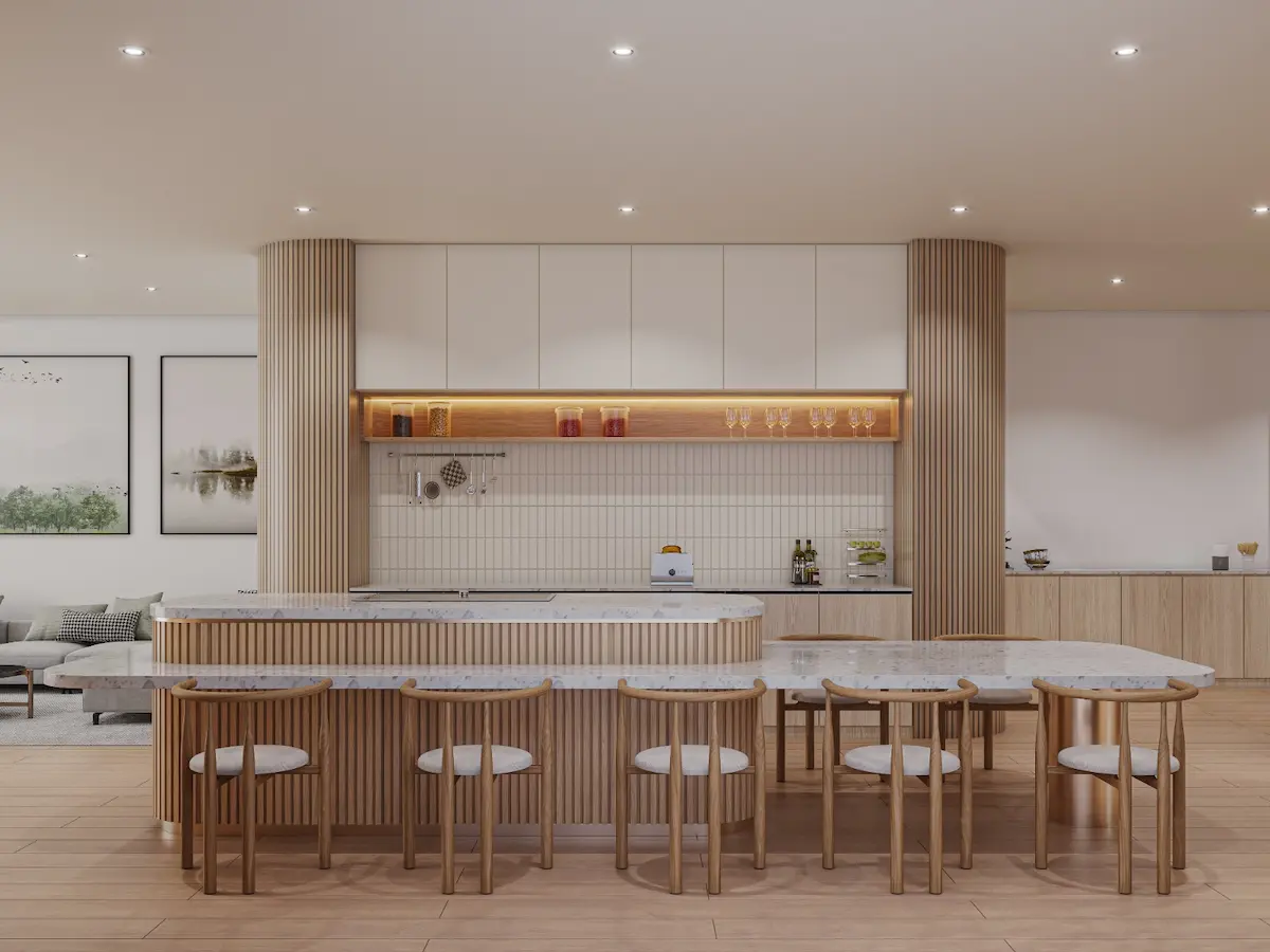 A stunning duplex showcasing sleek geometry, warm textures, and urban sophistication.